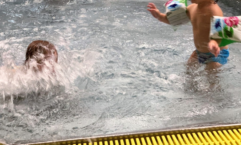 Mein Fazit zum Ausflug alleine ins Hallenbad mit den Kids: Es war anstrengend, aber sehr lustig und wir haben vor, jede Woche einmal herzukommen, bis wir wieder draußen baden können.