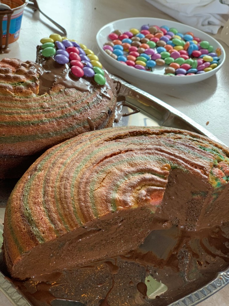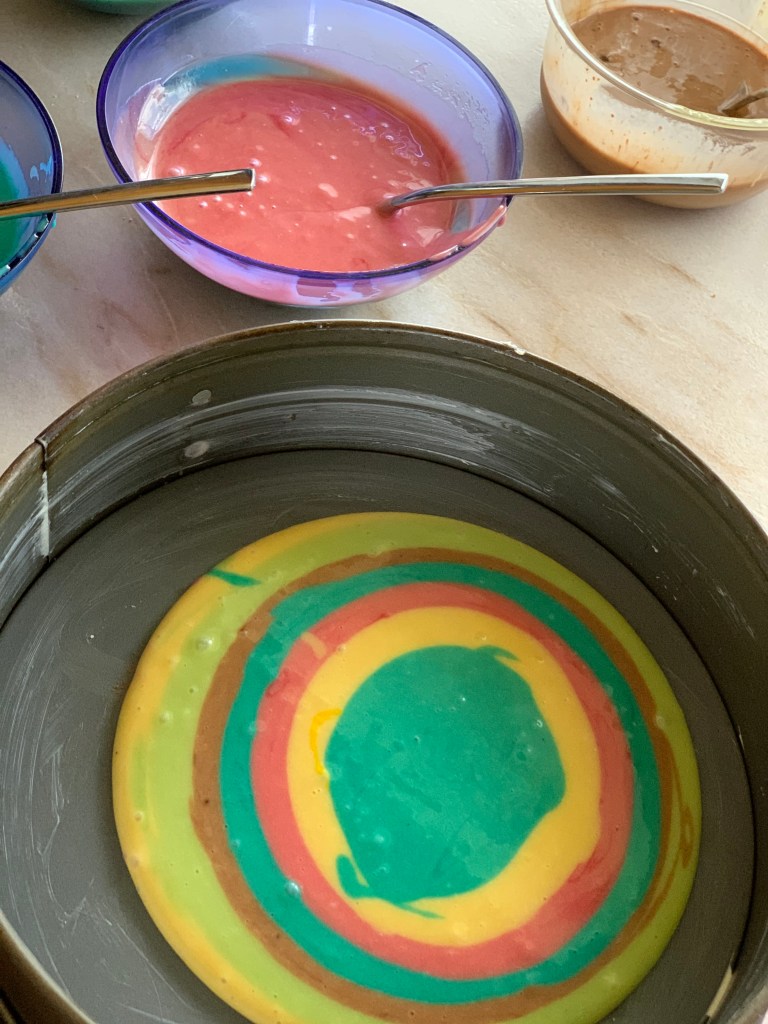 Das Rezept für den einfachen bunten Teig gibt es hier: https://www.pinterest.at/pin/611785930622604169/