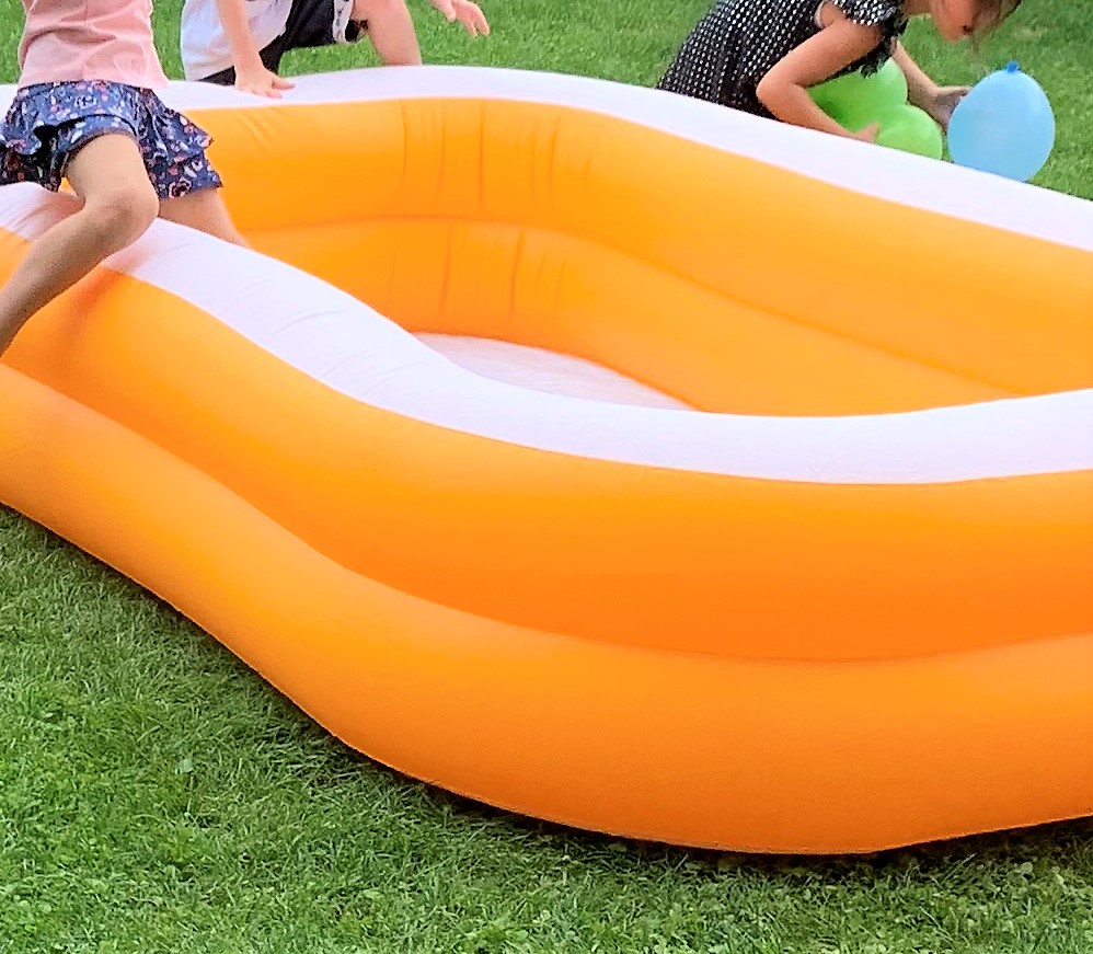 Und da der Sommer bisher eher selten badetaugliches Wetter parat hatte, kamen uns die Lego-Sets und das Playmobil ganz recht. Denn das (neue) Planschi konnte diesmal nur trocken bespielt werden… Aber mit Bällen, Luftballons und anderen „weichen“ Spielsachen drinnen ist es auch ein Spaß!