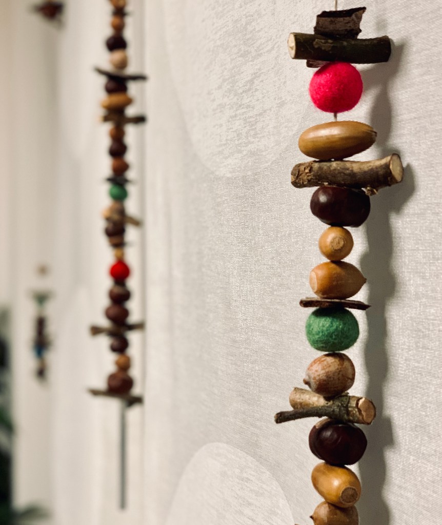 Wie im Vorjahr schon gibt es bei uns wieder diese tolle selbst gemachte Hängedeko aus vielen gesammelten Naturschätzen.