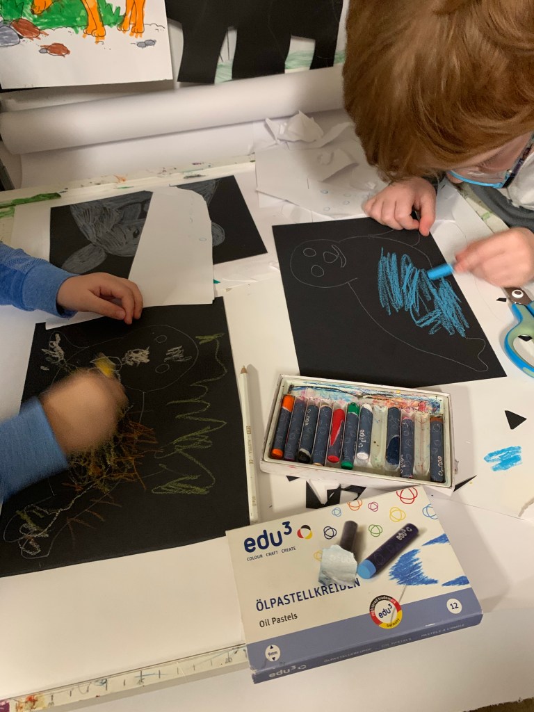Der große Pirat hat seine Liebe zum Ausmalen entdeckt. Bin ich froh, es hat schließlich 5,5 Jahre gedauert. Und die kleine Frau Löwe hat aufgehört alle Kreiden anzuknabbern…