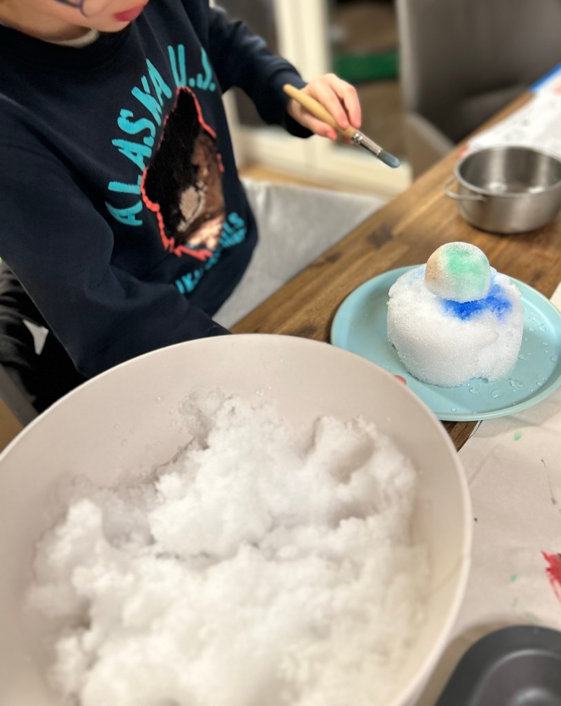 Es gelingt wirklich einfach und die Kinder hatten Spaß. Besonders als ich plötzlich den Schnee von draußen mit hinein gebracht habe.
