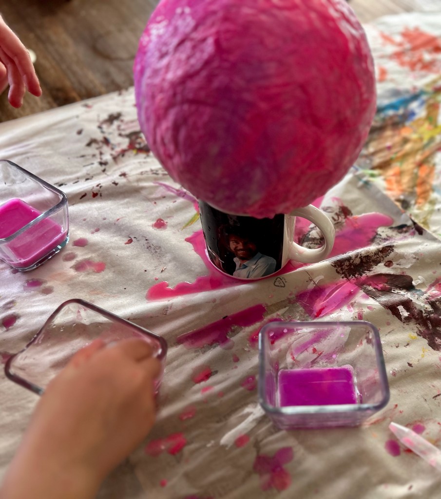 - Wenn alles getrocknet ist: Luftballon aufschneiden und entfernen
