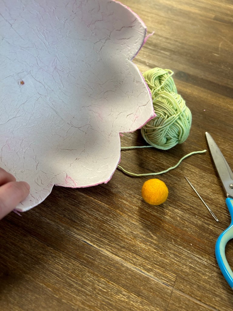 - Kugel oder gelbes Papier als „Blütenstempel“ innen anbringen